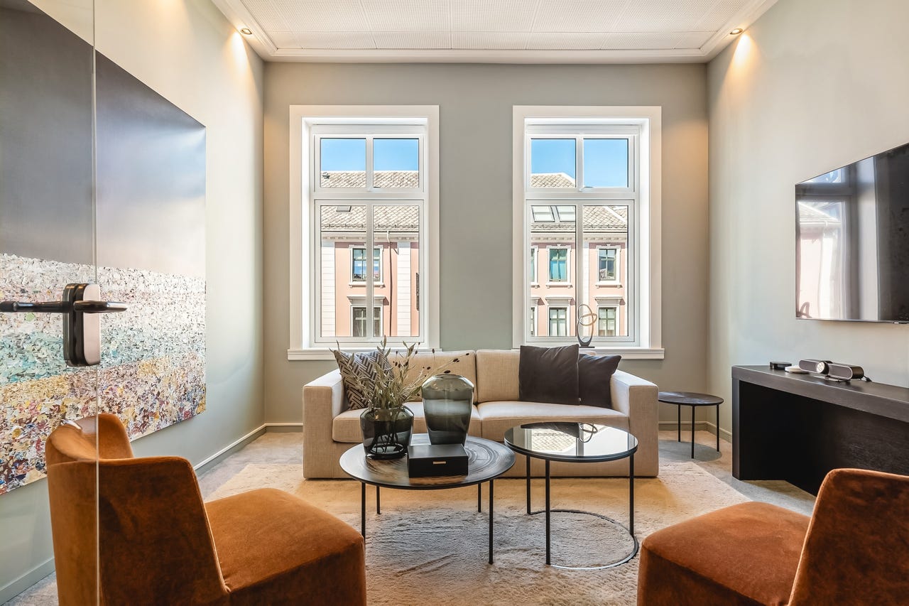 Bygget er betydelig oppgradert de senere årene, og det er blant annet investert i nye vinduer og bedre isolasjon. Dette gjør at lokalene oppleves som stille og behagelige, til tross for sentral beliggenhet med byliv like utenfor. Fra hjørnekontoret er det direkte utgang til en privat balkong, et sjeldent gode i denne delen av byen.