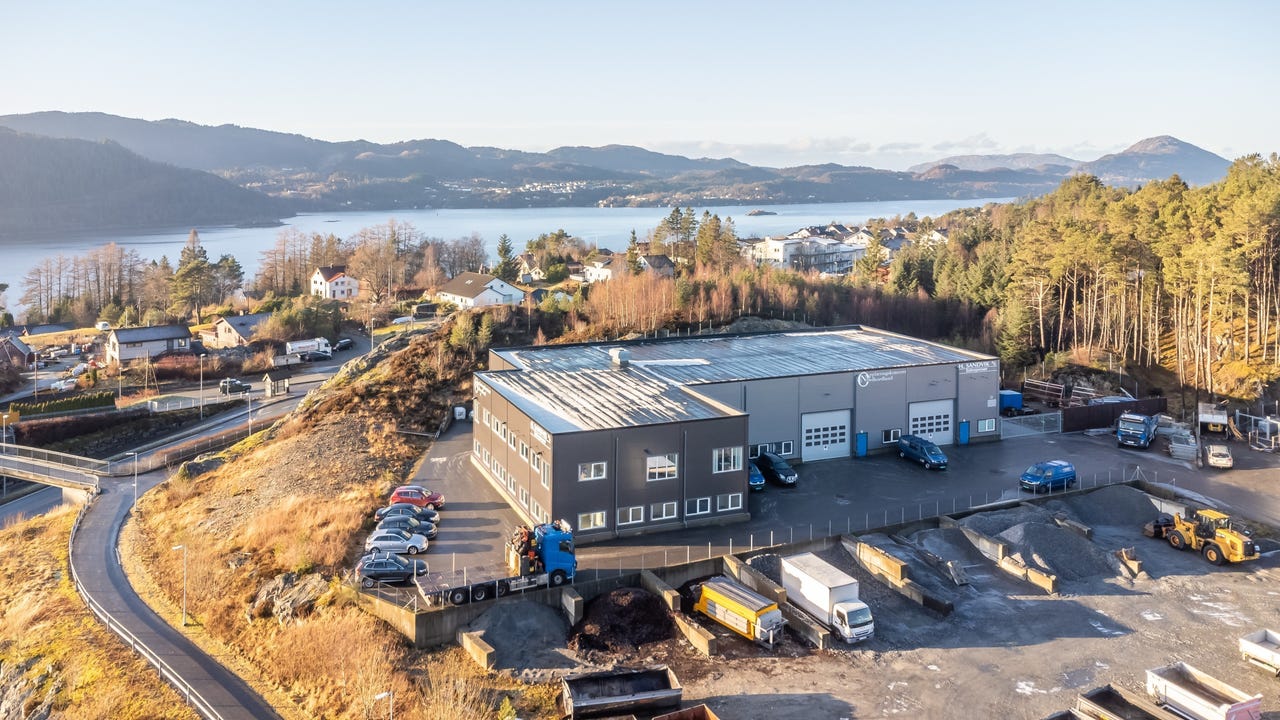Plasseringen er et stort pluss. Eiendommen ligger lett tilgjengelig fra Alverflaten, kun fem minutter fra Knarvik og rundt en halvtimes kjøring fra Bergen sentrum. For både ansatte og kunder er det svært praktisk med parkering rett utenfor døren, ingen leteaksjoner, ingen parkeringsstress.
