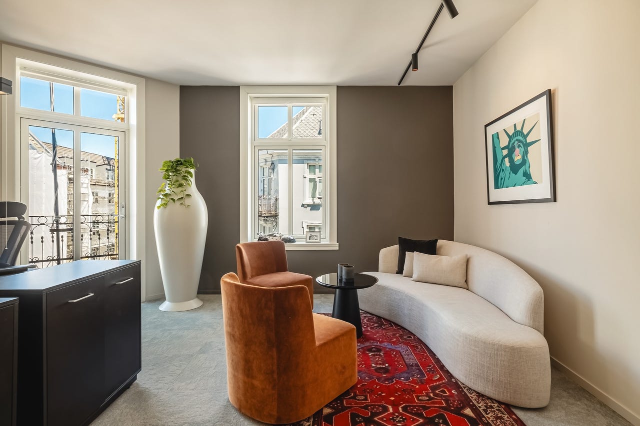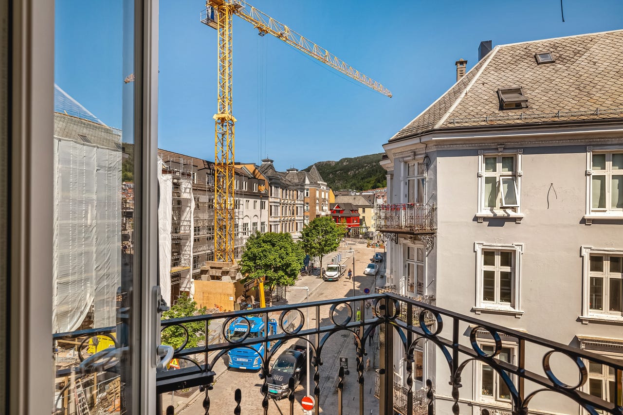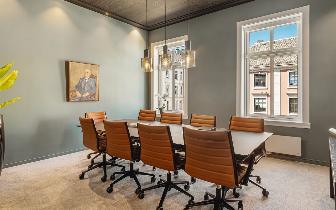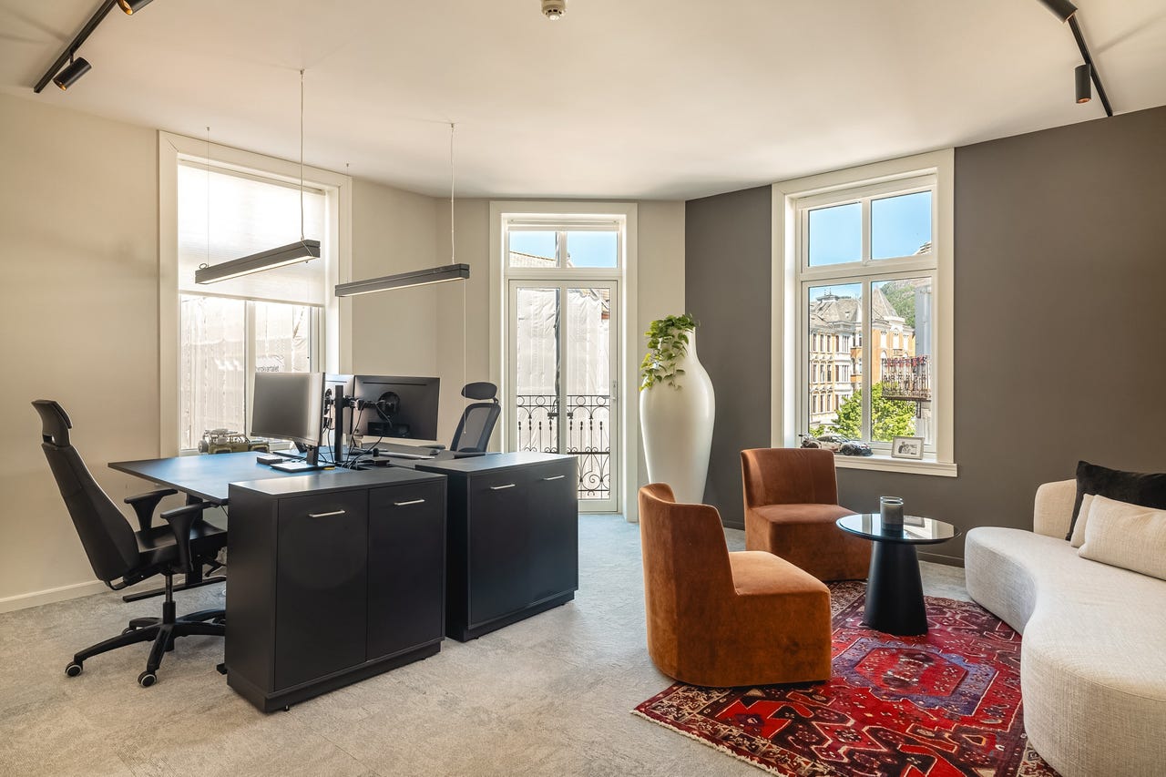 Bygget er betydelig oppgradert de senere årene, og det er blant annet investert i nye vinduer og bedre isolasjon. Dette gjør at lokalene oppleves som stille og behagelige, til tross for sentral beliggenhet med byliv like utenfor. Fra hjørnekontoret er det direkte utgang til en privat balkong, et sjeldent gode i denne delen av byen.