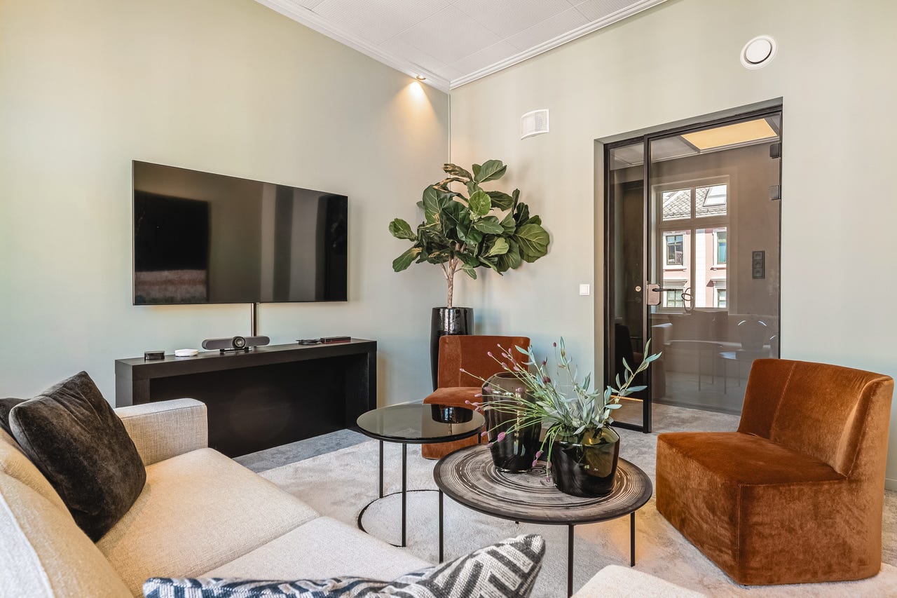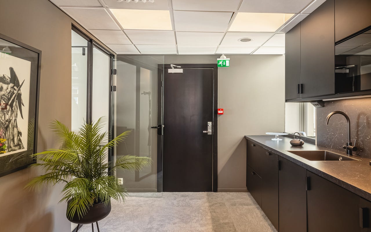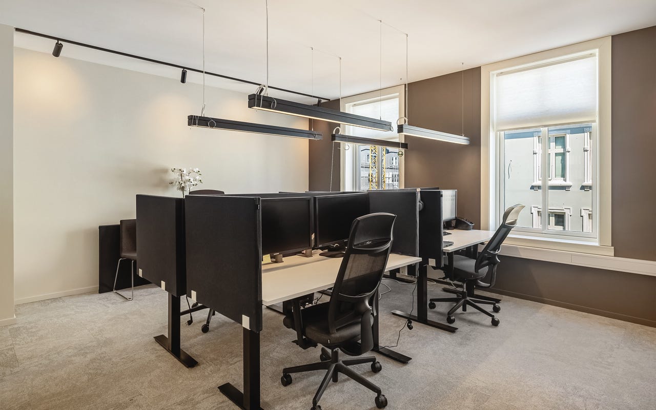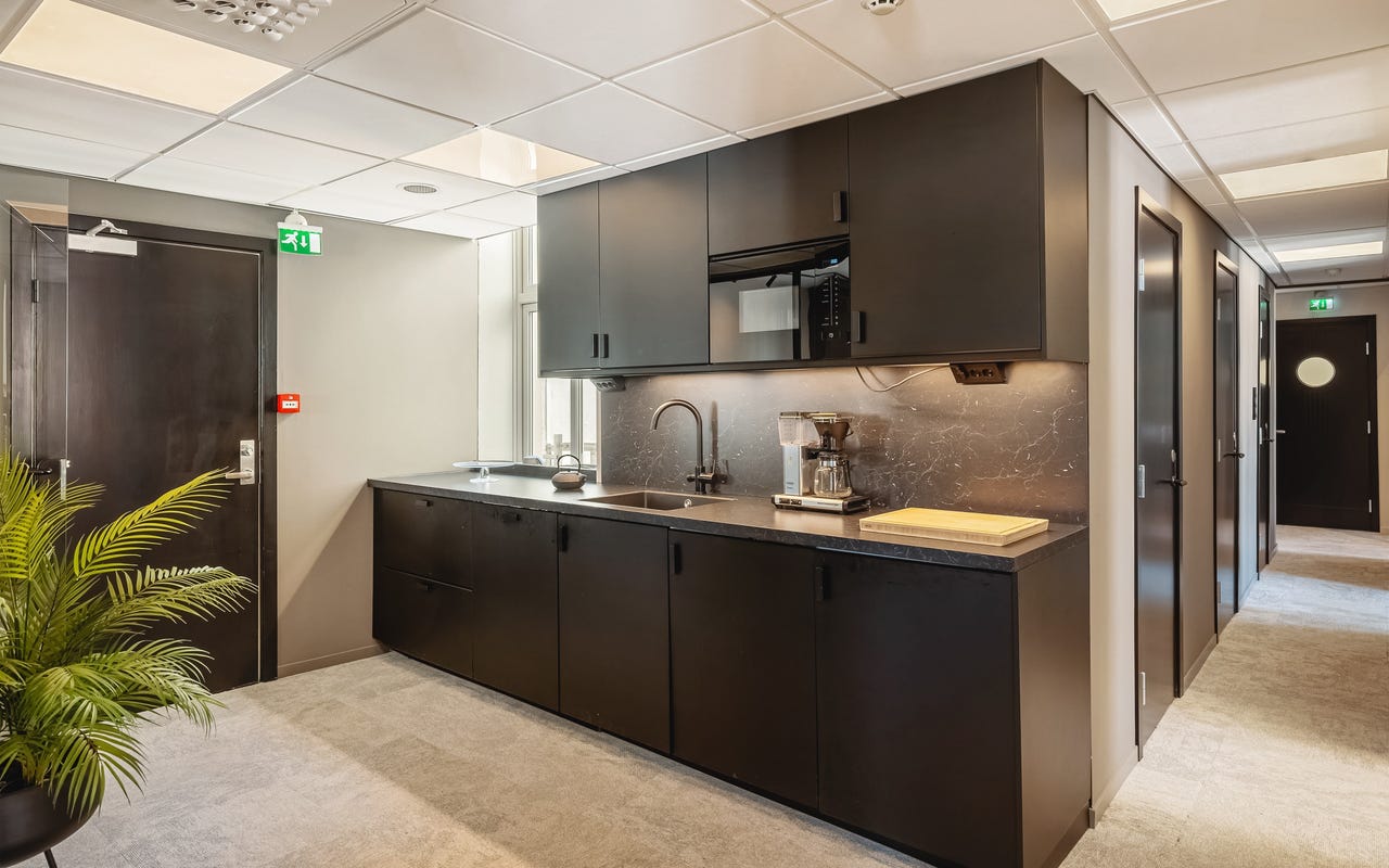 Bygget er betydelig oppgradert de senere årene, og det er blant annet investert i nye vinduer og bedre isolasjon. Dette gjør at lokalene oppleves som stille og behagelige, til tross for sentral beliggenhet med byliv like utenfor. Fra hjørnekontoret er det direkte utgang til en privat balkong, et sjeldent gode i denne delen av byen.