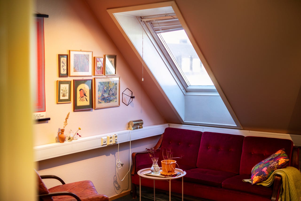 Øverst i en klassisk sentrumsgård finner du Kontorfellesskapet VT18. Her er det nå 3 ledige kontorplasser for dere som ønsker en sentral beliggenhet, kombinert med rolige og inspirerende omgivelser. Atmosfæren er uformell og hyggelig, og lokalene har sjel, med skråtak og dagslys fra Velux-vinduer som gir rommene særpreg og karakter. Her får du god arbeidsflyt, samtidig som det er rom for en uformell prat over en kopp kaffe.